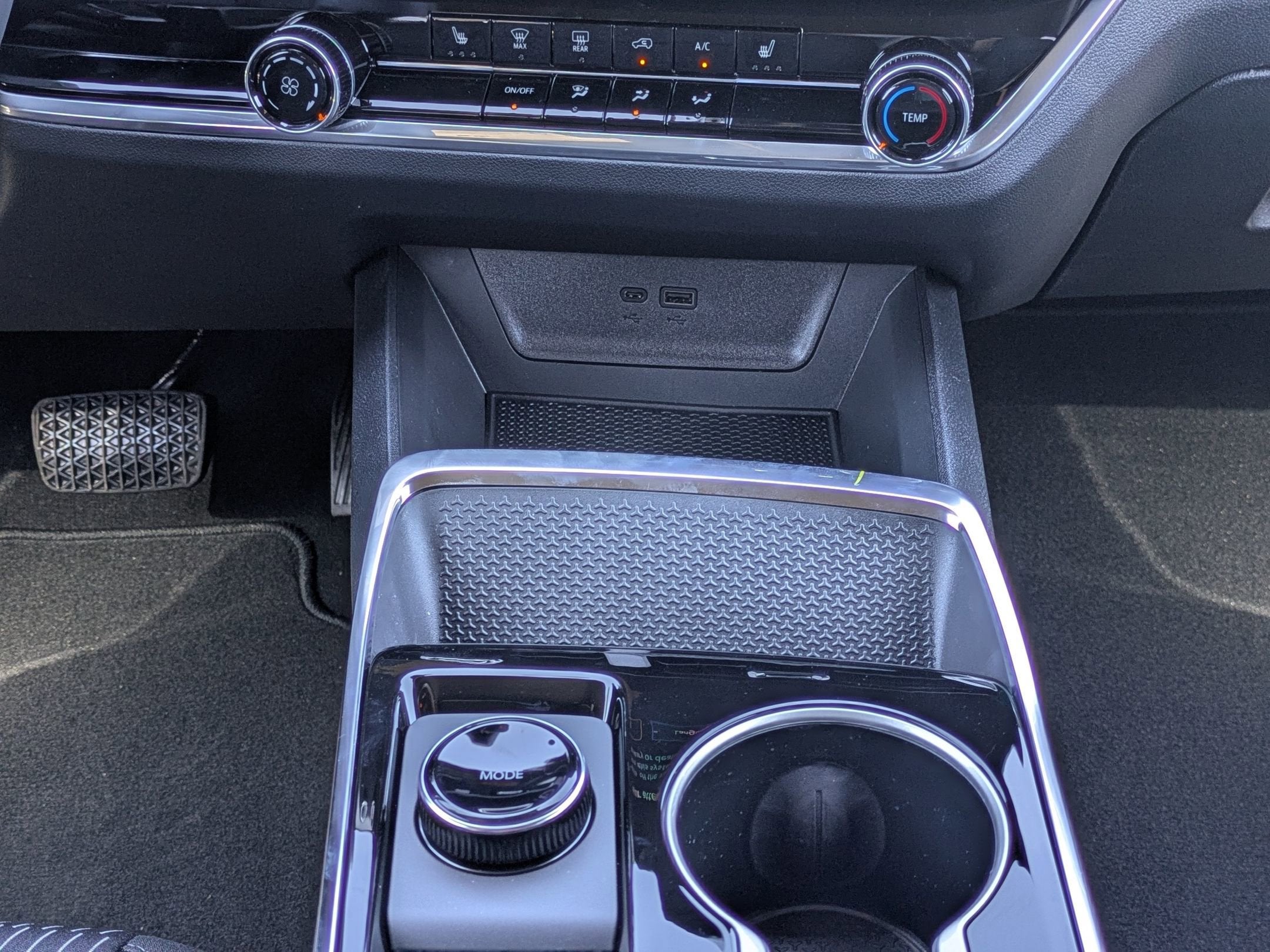 - 2 type-C, located on back of center console, charge-only1