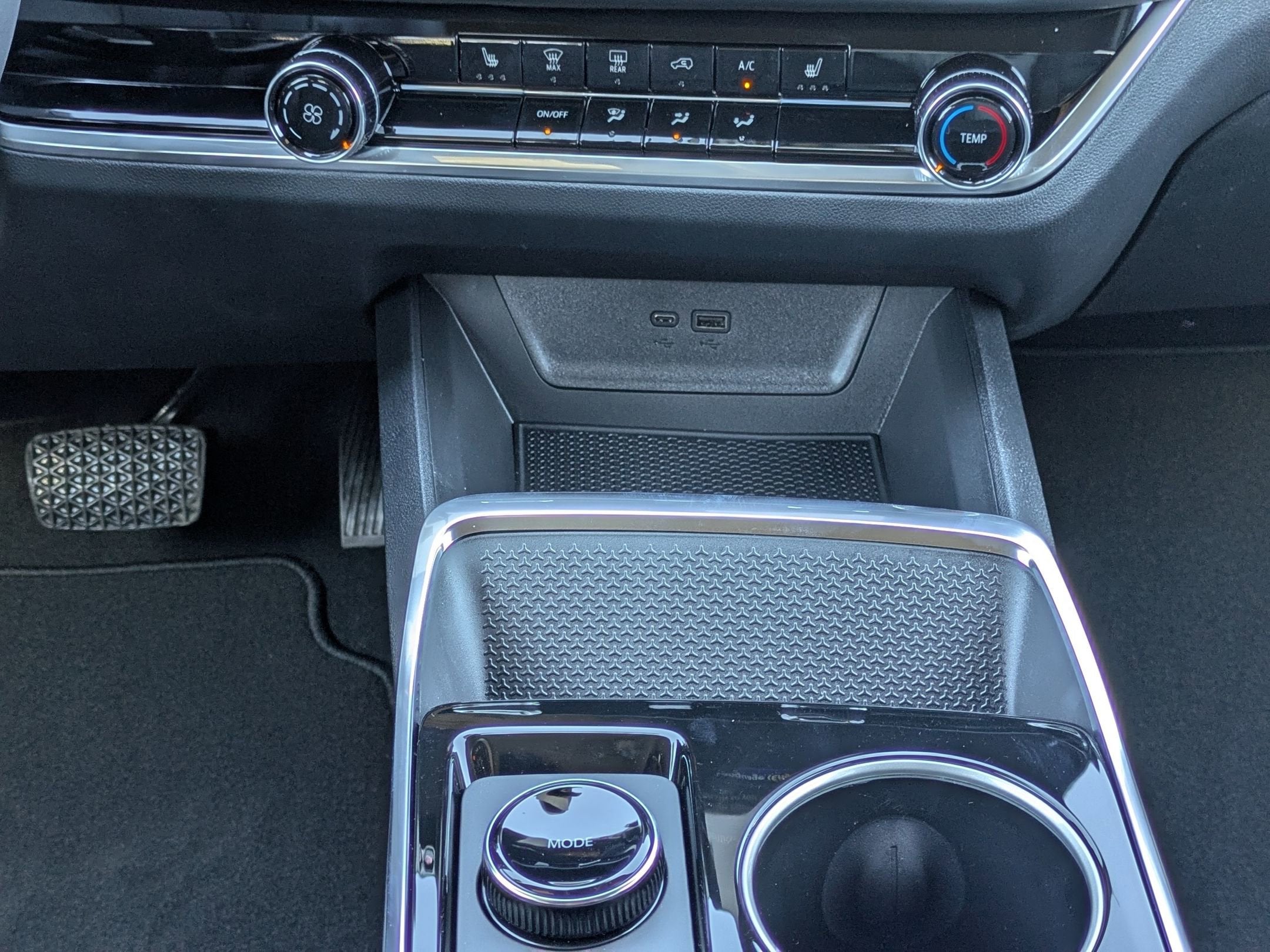 - 2, one type A and one type-C, data/charge, located in the front area of the center console1