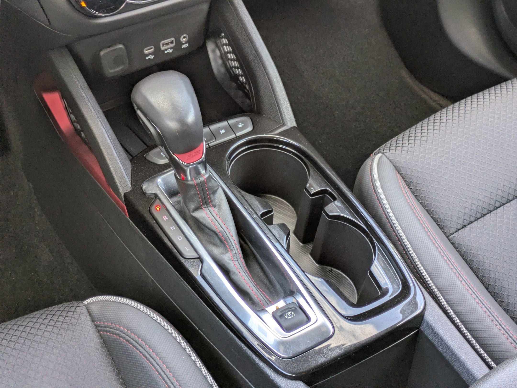 Interior Color Jet Black With Red Accents, Cloth With Leatherette Seat Trim